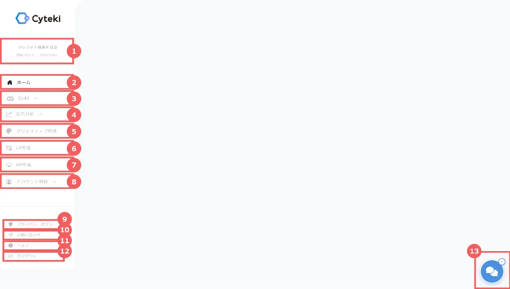 AI生成・ページ作成などで消費されるため、残高が少ない場合は早めの確認をおすすめします。