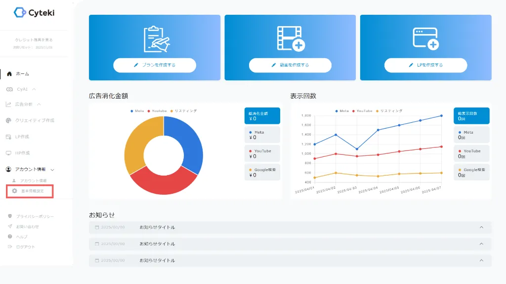 この基本情報は、LP・動画・HP生成時に自動で読み込まれるため、正確かつ最新の情報に更新しておくことが重要です。
