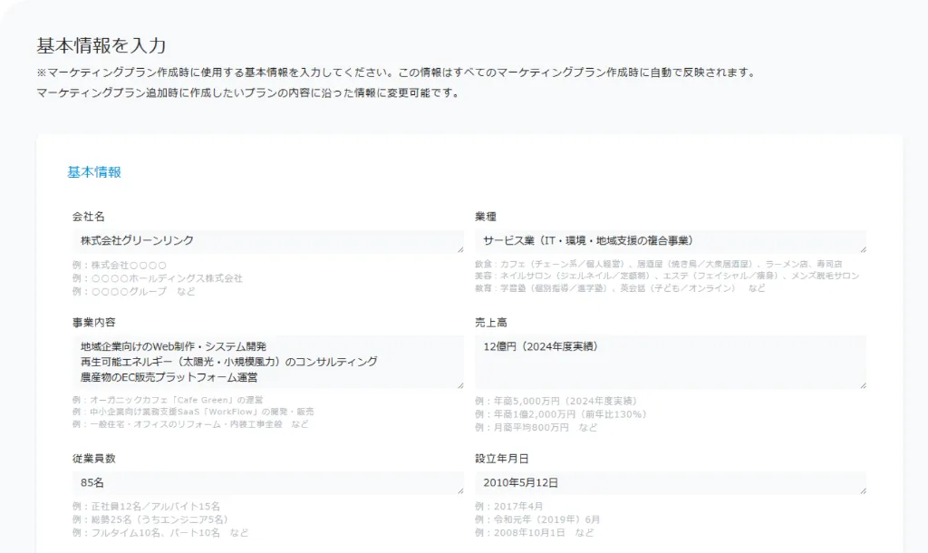この情報はすべてのマーケティングプラン作成時に自動で反映されます。