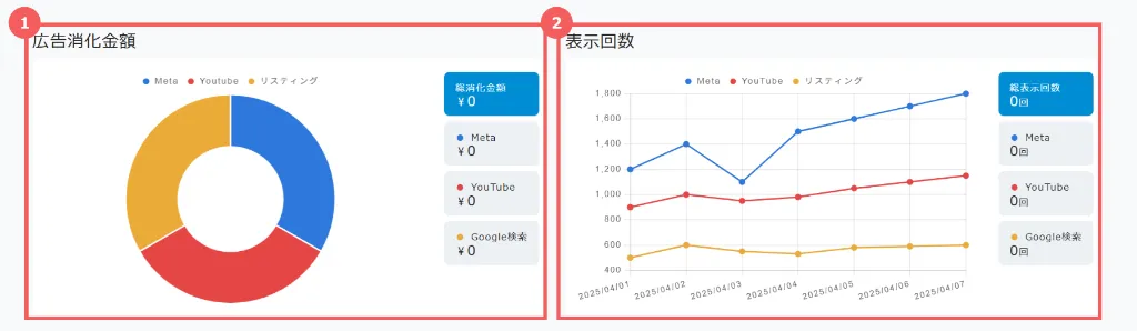 複数媒体(Google/Metaなど)を比較し、成果の変化を確認するのに最適です。