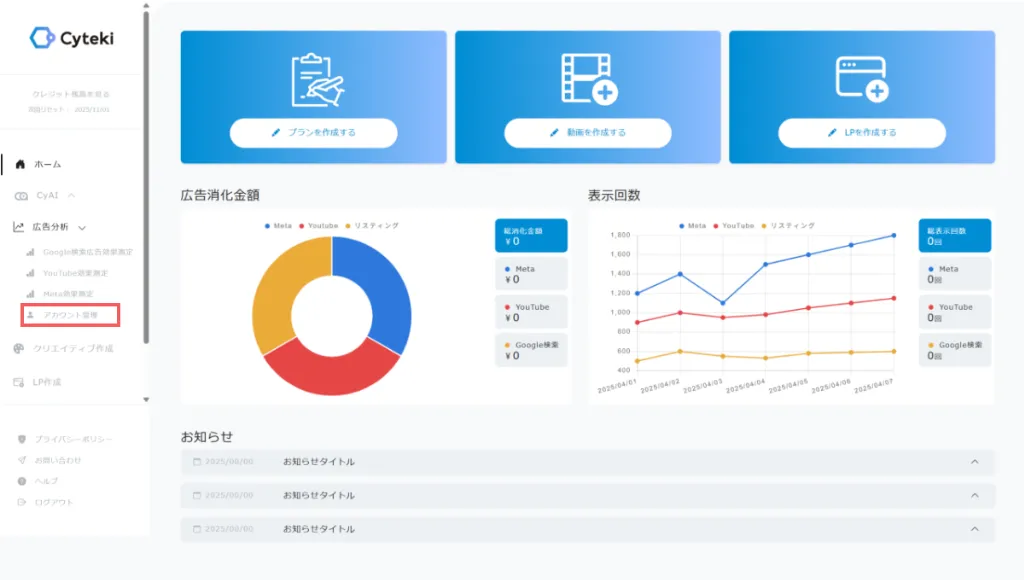 本システムでは日付が変わったタイミングで前日までの広告データの自動取得、更新を行います。