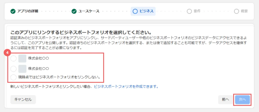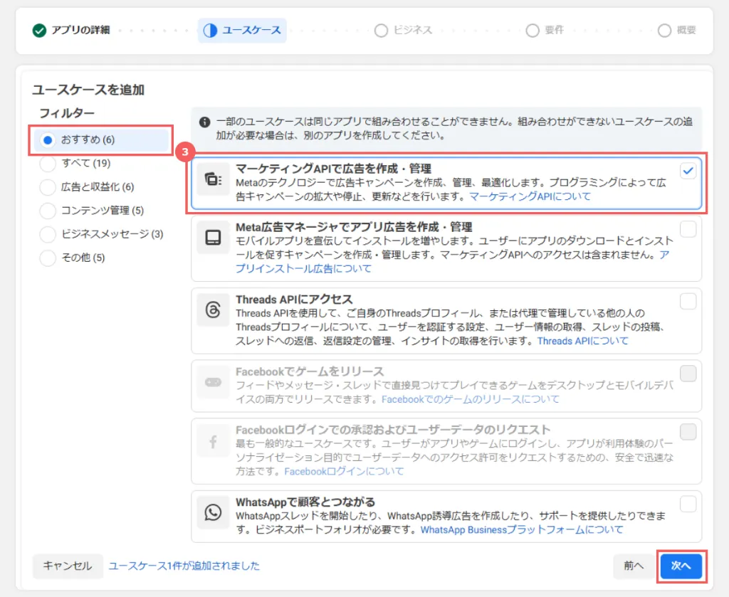 必ずビジネスマネージャへの登録、可能であればキャンペーンの作成まで完了したアカウントで登録を行ってください。