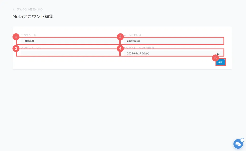 アクセストークンが無効または期限切れの場合、広告データの連携が停止するため、正確に入力してください。