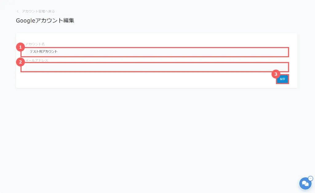 編集画面の「アカウント名」欄に、管理用の名前を入力または修正します。