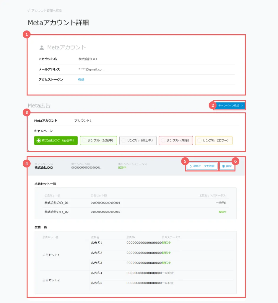 Metaアカウント詳細画面