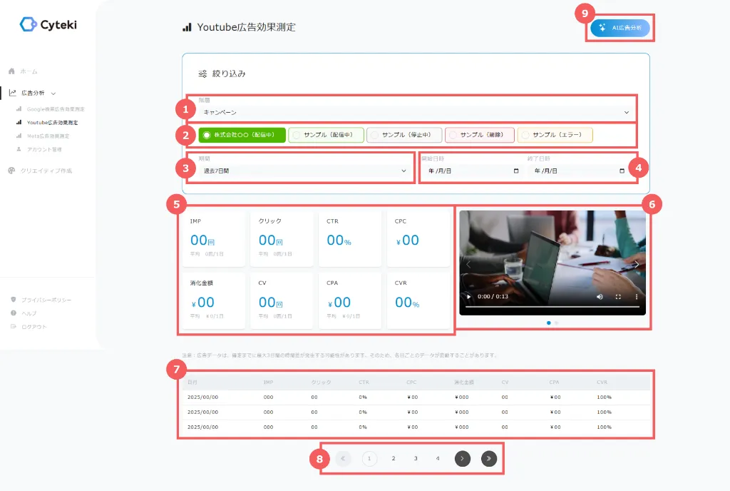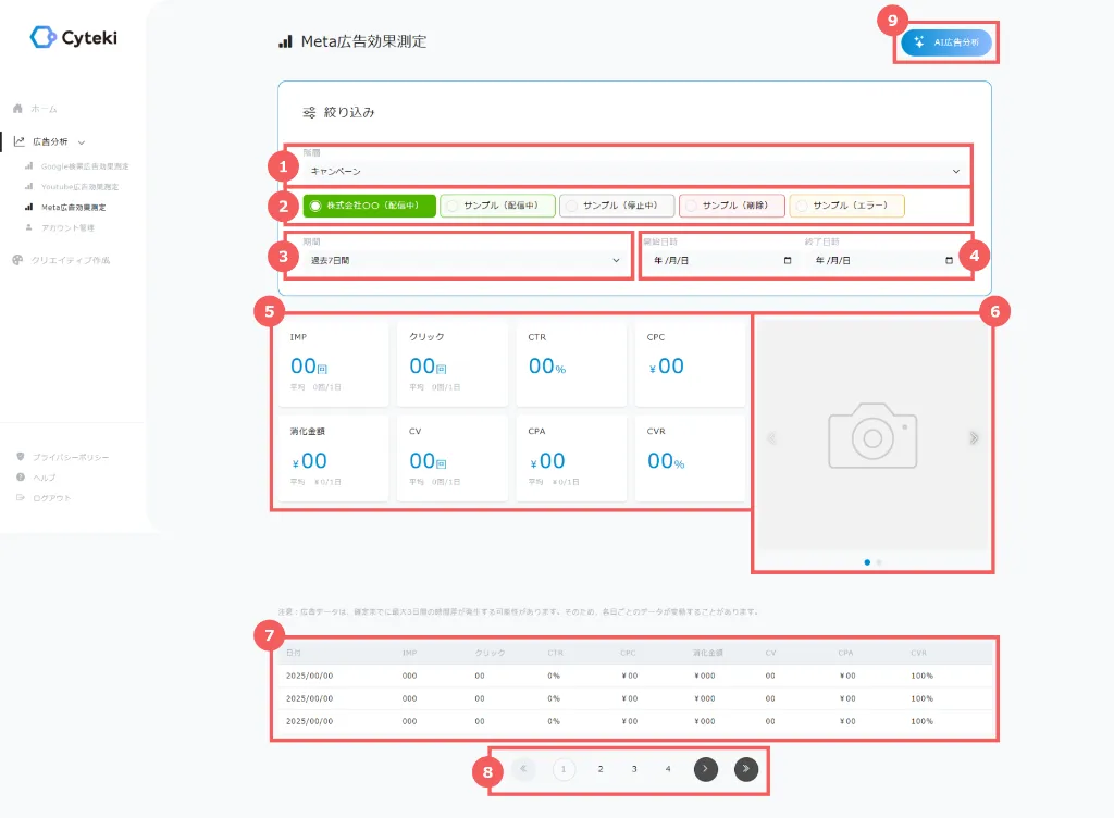 9. 「AI広告分析」ボタン