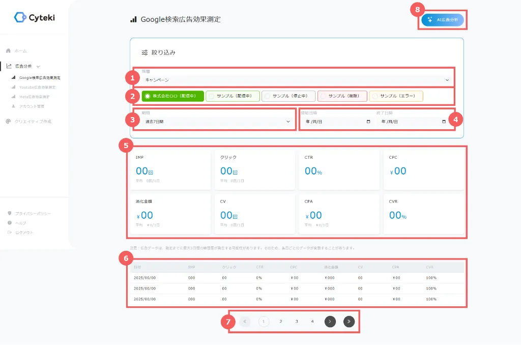 8. 「AI広告分析」ボタン