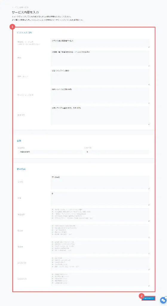 ・プラン作成時に入力したサービス説明に詳細を加える