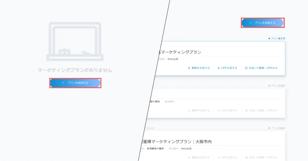 管理画面上部の 「プランを追加する」 ボタンをクリックします。