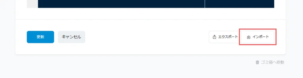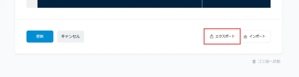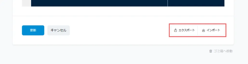 ページの基本情報設定より、エクスポート・インポート機能を使用することによってデータを書き出したり読み込んだりすることができます。