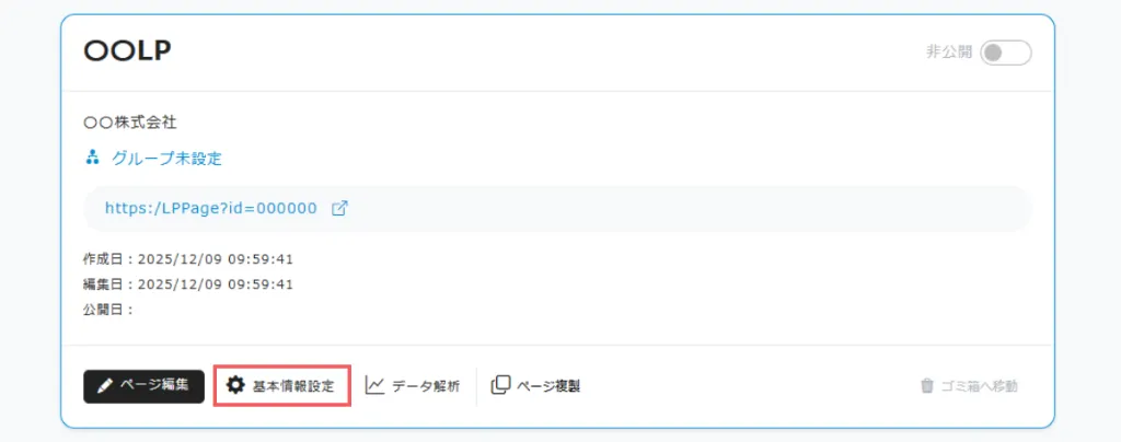 ②ページ一覧に戻り、基本となるLPの「基本情報設定」を押し、「このLPのプライバシーポリシーを共通で使用する」にチェックを入れます。