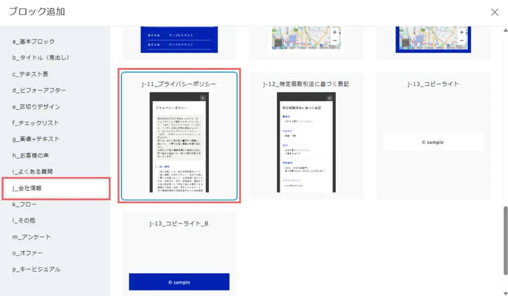 「j_会社情報」カテゴリーから「j-11_プライバシーポリシー」を選択します。