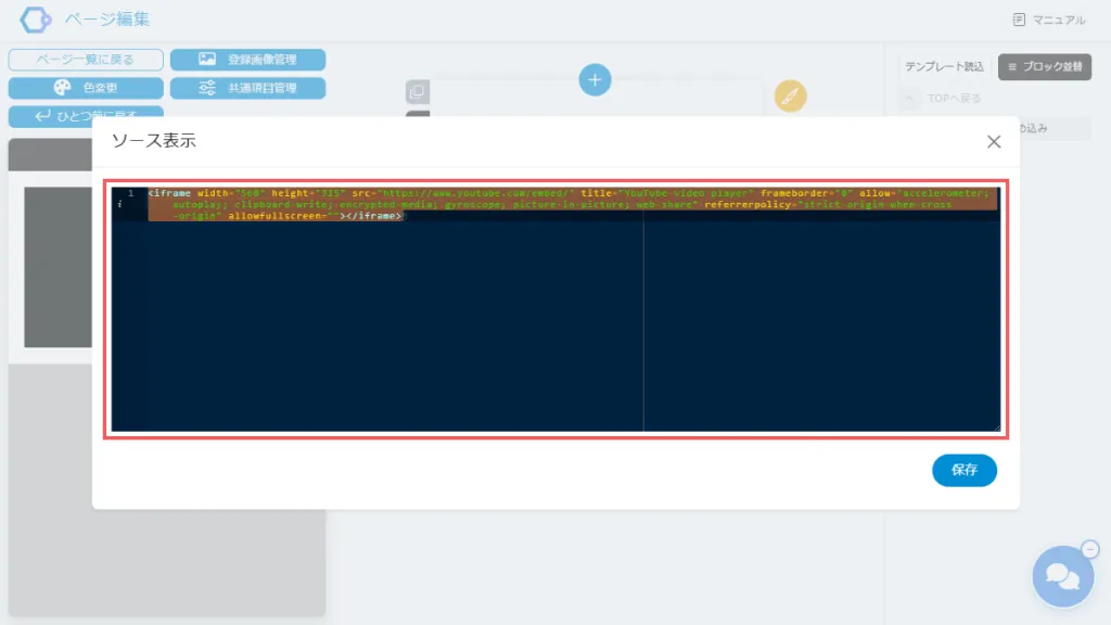 先ほどコピーしたHTMLコードを、指定した場所に貼り付けます。