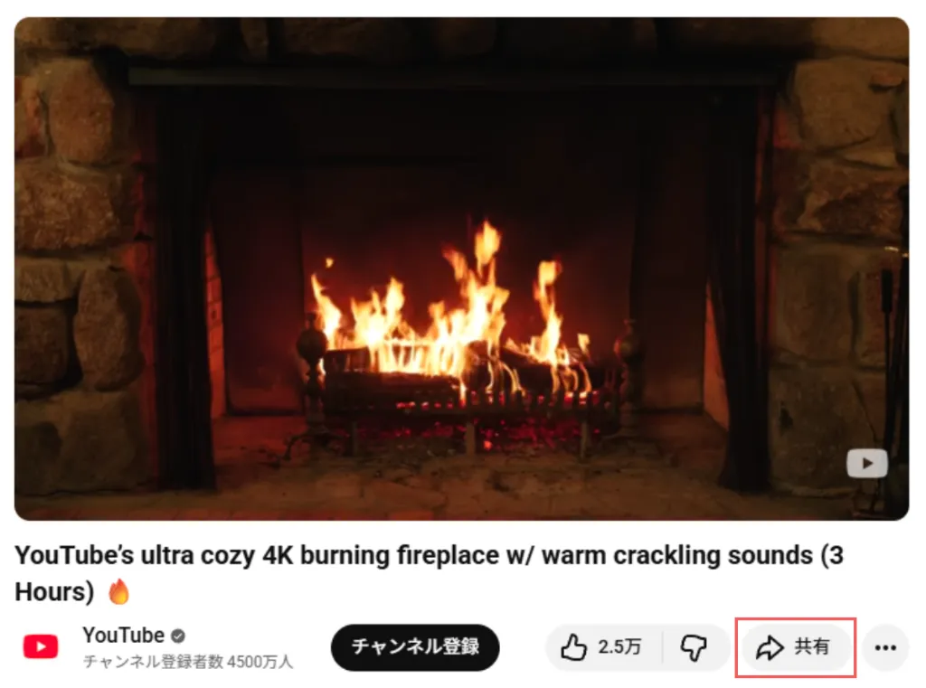 動画の右下にある「共有」ボタンをクリックします。