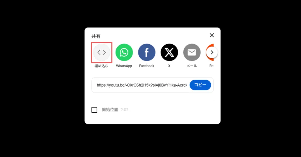 3. 「埋め込む」ボタンを選択