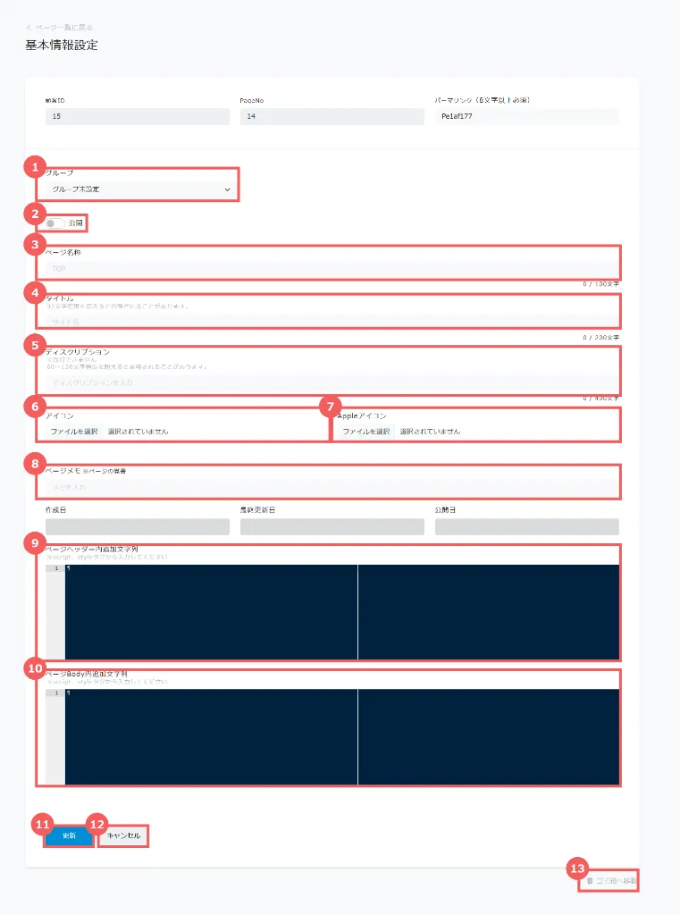 外部には表示されず、管理者・編集者向けの備考として活用できます。