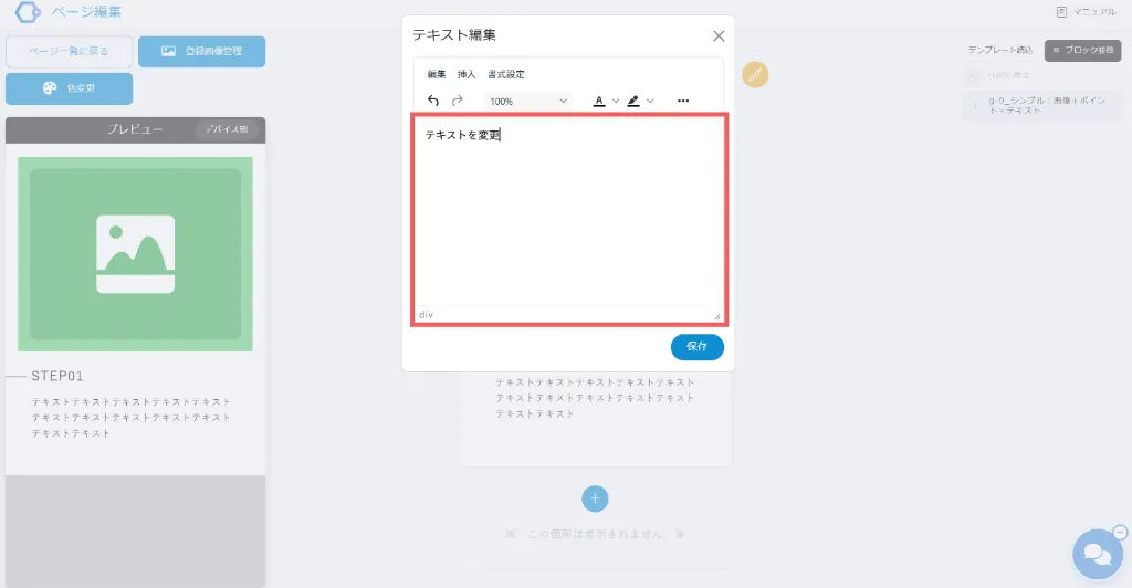 編集したい箇所をクリックすると、「テキスト編集」ダイアログが表示されます。