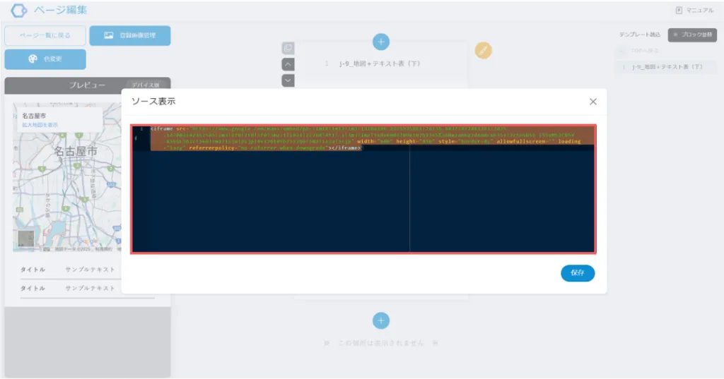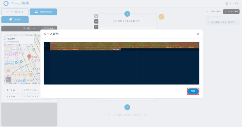 先ほどコピーしたHTMLコードを、指定した場所に貼り付けます。