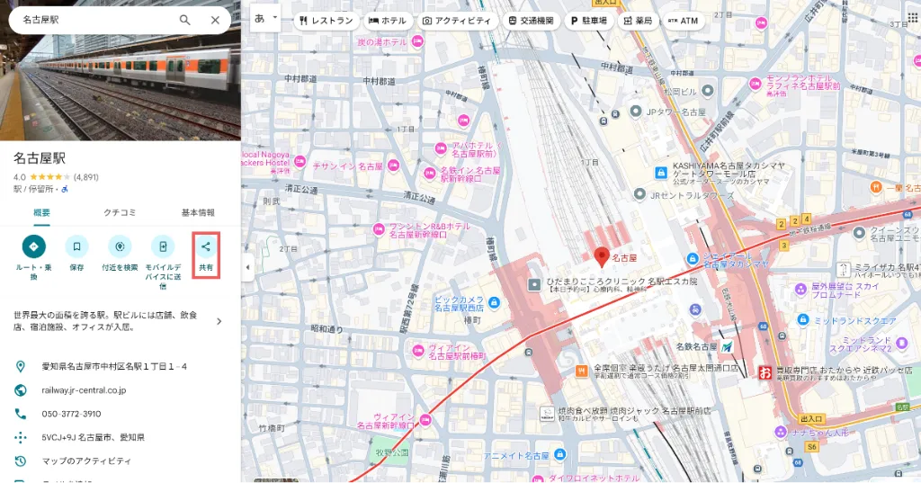 検索結果の左上にある「共有」ボタンをクリックします。