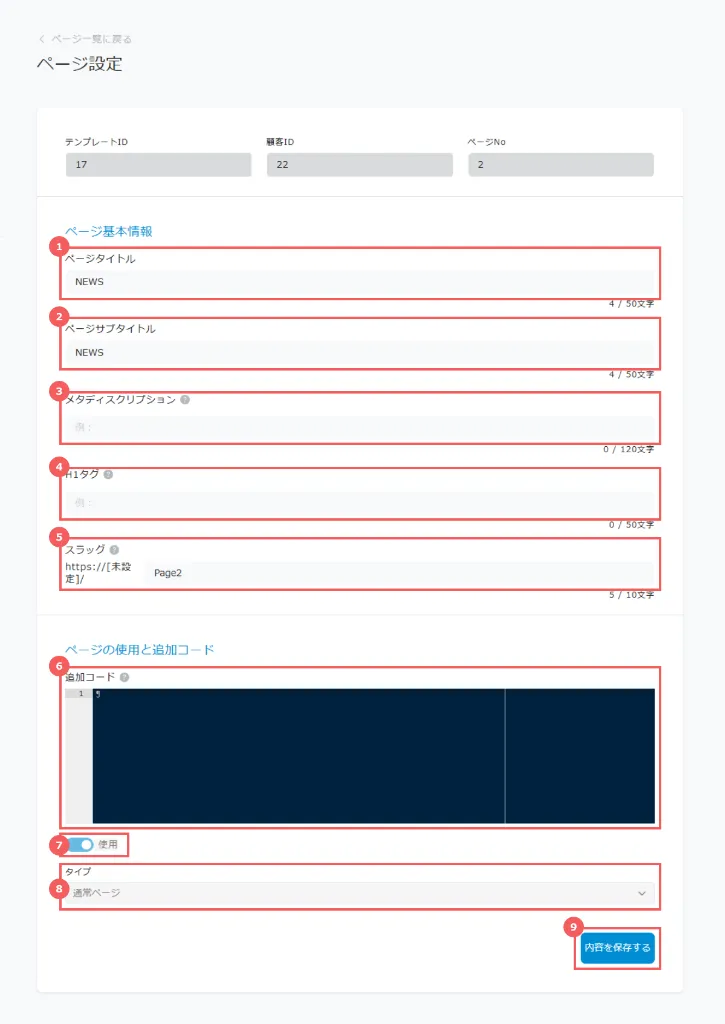 ページタイプに応じてナビゲーションや設定が自動で適用される場合があります。